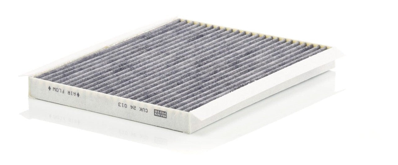 High-quality MANN-FILTER cabin filters with active carbon - nearly 100% protection from particles like pollen, diesel soot & tyre abrasion / Additional protection from harmful gases & unpleasant odour. The trated highly-effective activated carbon gives protection against harmful gases such as ozone, nitrogen oxide or sulphur dioxide and eliminates unpleasant odours during the entire service interval.