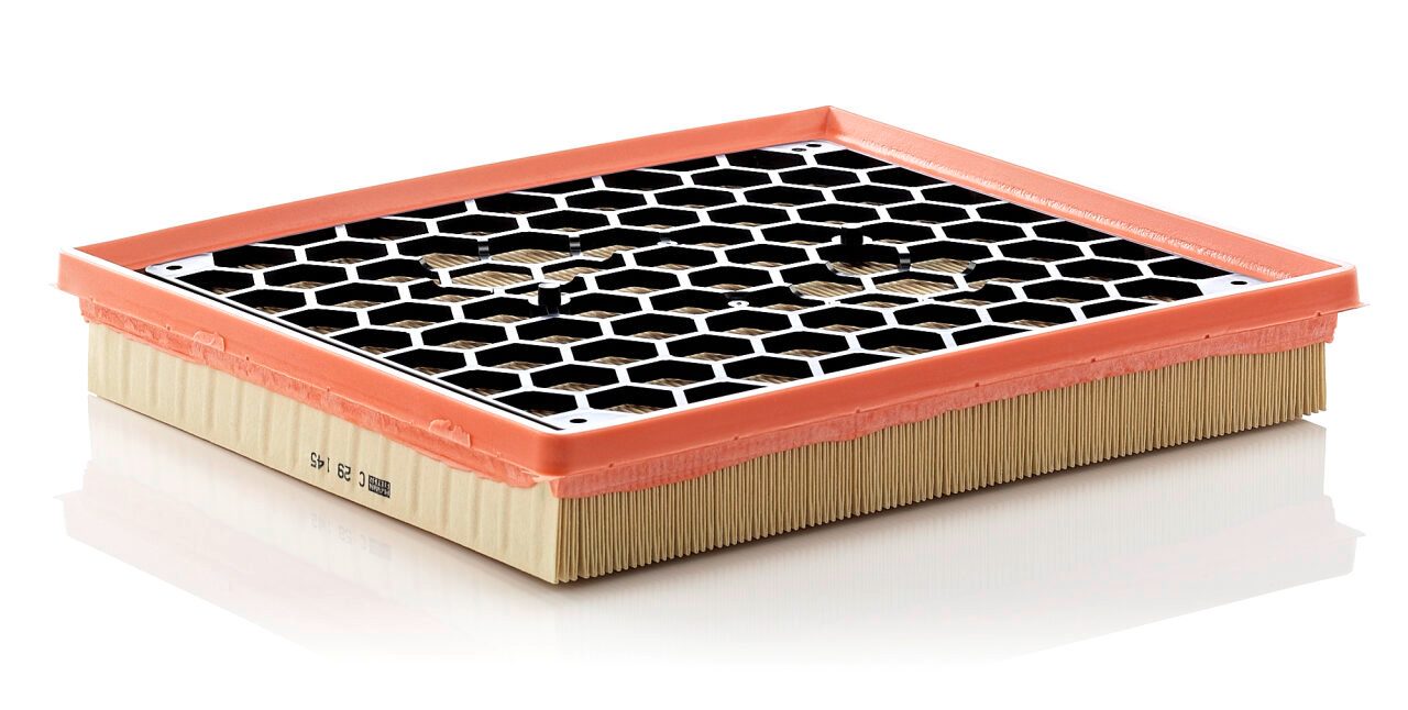 High-quality MANN-FILTER air filters for clean air intake and optimum protection for your engine, mass air flow sensor & other sensitive components / They meet requirements of modern engine technology. Highest dirt holding capacity and dirt separation efficiency, low flow resistance and high pleat stability ensure functional reliability during the entire service interval.