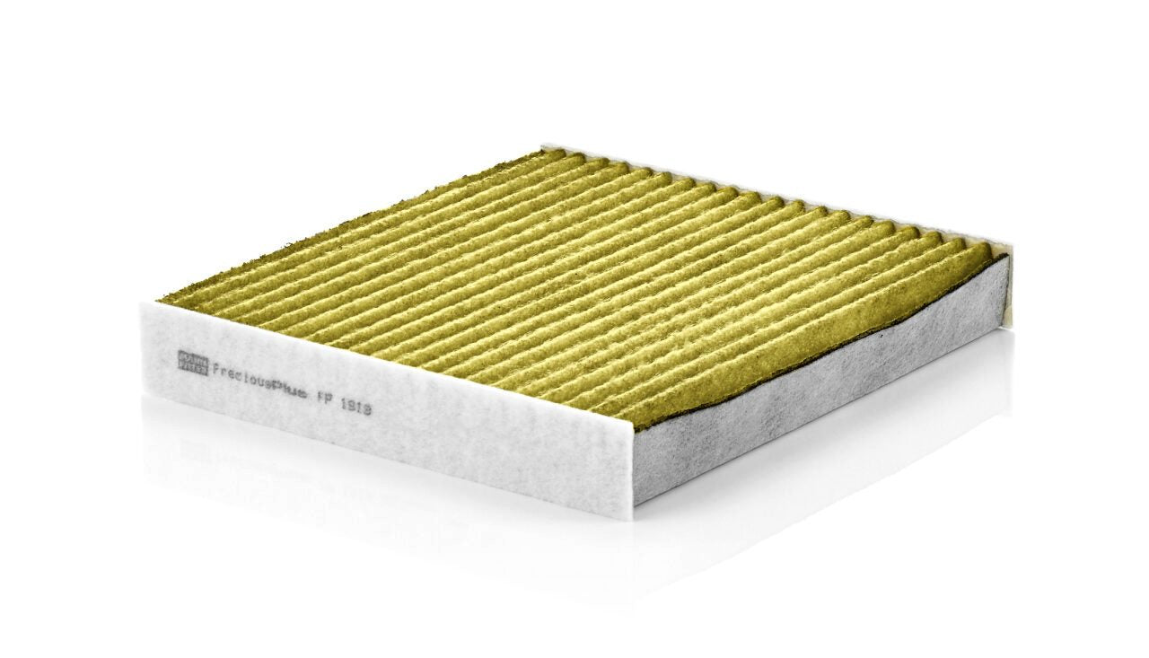 Biofunctional MANN-FILTER FreciousPlus cabin air filters - nearly 100% protection against nitrogen oxides, dust, allergens and mould - harmful gases and unpleasant odours are also eliminated and virus aerosols filtered. The three-layer filter technology absorbs almost 100% of allergens, reduces the growth of molds and bacteria by more than 98% and stops fine dust almost completely.