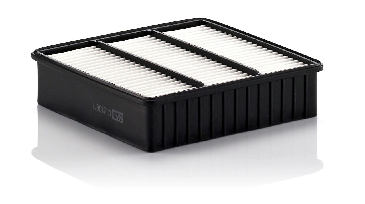 High-quality MANN-FILTER air filters for clean air intake and optimum protection for your engine, mass air flow sensor & other sensitive components / They meet requirements of modern engine technology. Highest dirt holding capacity and dirt separation efficiency, low flow resistance and high pleat stability ensure functional reliability during the entire service interval.