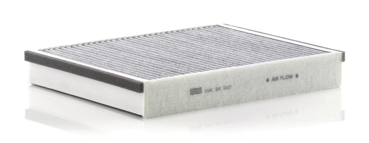 High-quality MANN-FILTER cabin filters with active carbon - nearly 100% protection from particles like pollen, diesel soot & tyre abrasion / Additional protection from harmful gases & unpleasant odour. The trated highly-effective activated carbon gives protection against harmful gases such as ozone, nitrogen oxide or sulphur dioxide and eliminates unpleasant odours during the entire service interval.
