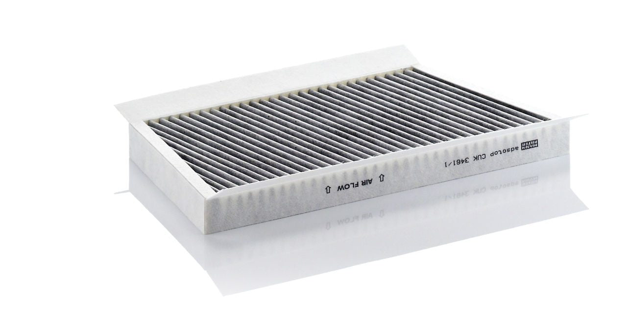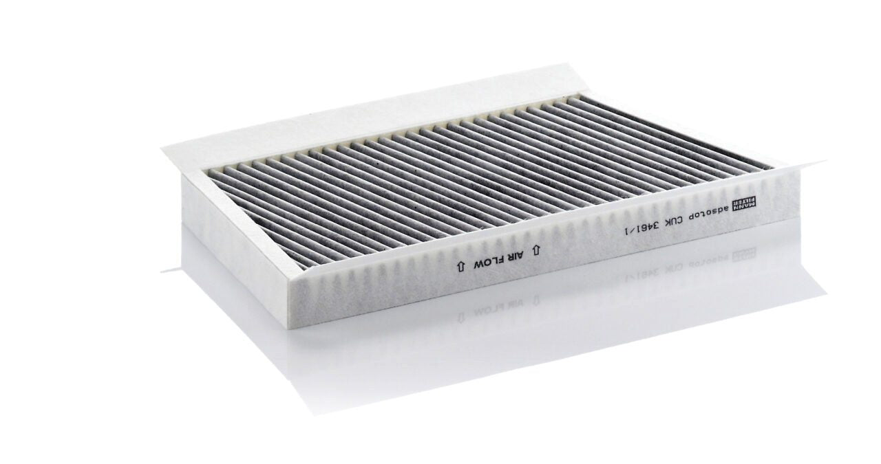 High-quality MANN-FILTER cabin filters with active carbon - nearly 100% protection from particles like pollen, diesel soot & tyre abrasion / Additional protection from harmful gases & unpleasant odour. The trated highly-effective activated carbon gives protection against harmful gases such as ozone, nitrogen oxide or sulphur dioxide and eliminates unpleasant odours during the entire service interval.