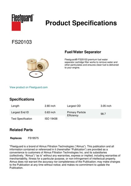 Genuine Fleetguard FS20103