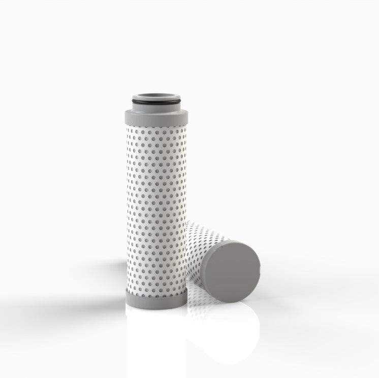 The efficiency of the element is shown using the Micron (µ) and Beta (β) ratings. The micron rating indicates the size of the particle being filtered and the beta rating the efficiency, calculated as 1/β.